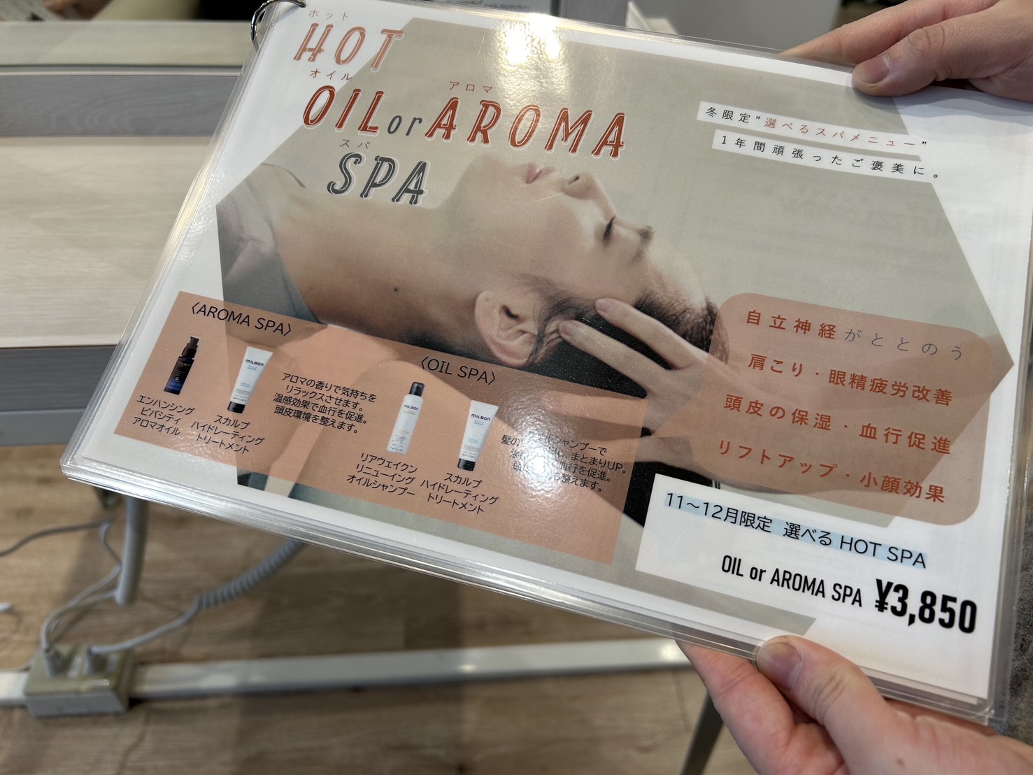 今年のホットスパはアロマスパとオイルスパの2種類。