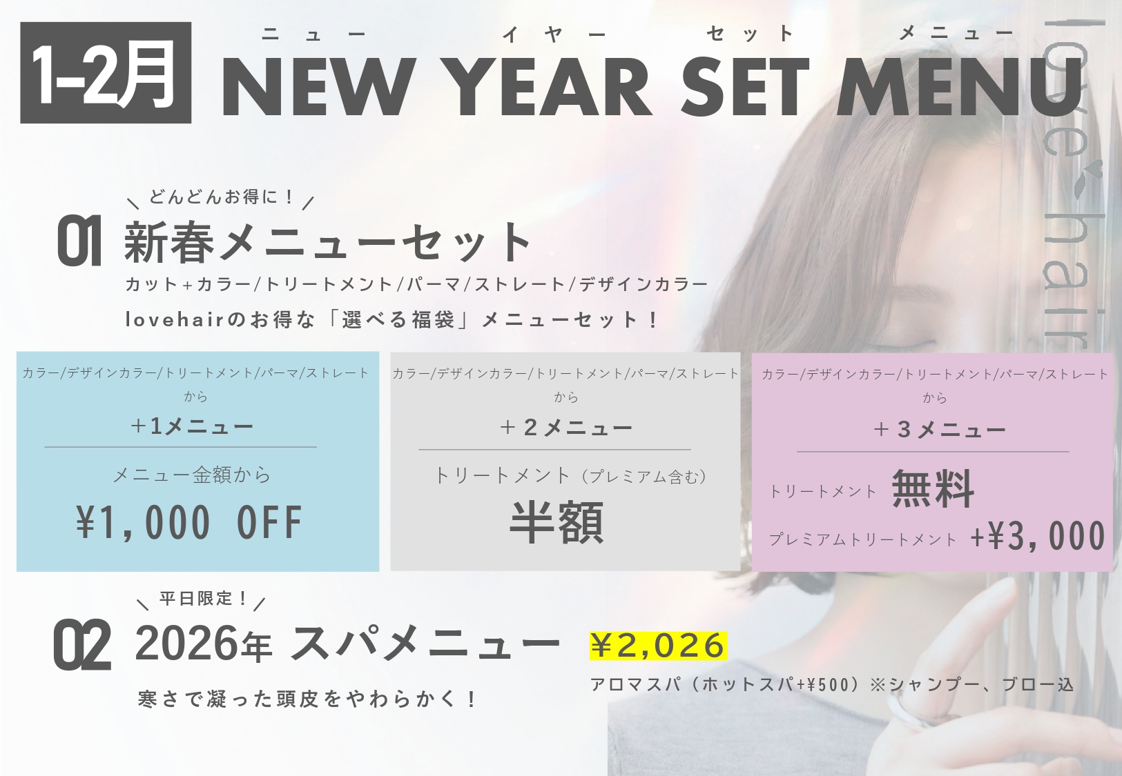 初めてlovehairにご来店いただくお客様へ、限定のセットメニューはこちらから